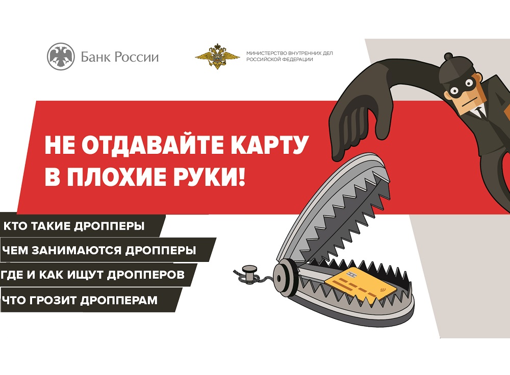 Дропперы выполняют указания злоумышленников и переводят деньги на другие счета и карты, проводят операции по выводу и обналичиванию средств, полученных преступным путем, а также действия с наличными в банкоматах и терминалах либо оформляют на себя банковские карты и отдают их злоумышленникам, получая вознаграждение и т. д.